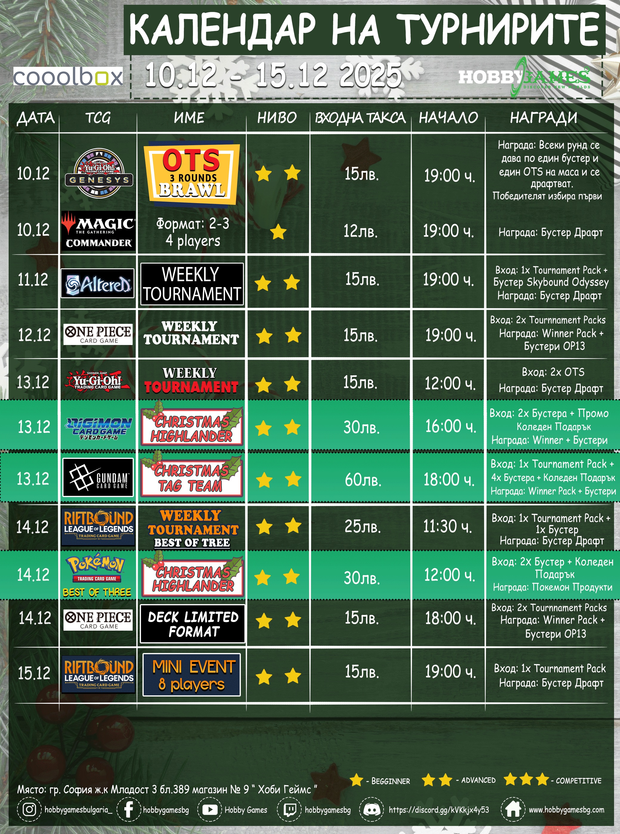 Hobby Games Tournaments 10.12.25 - 15.12.25